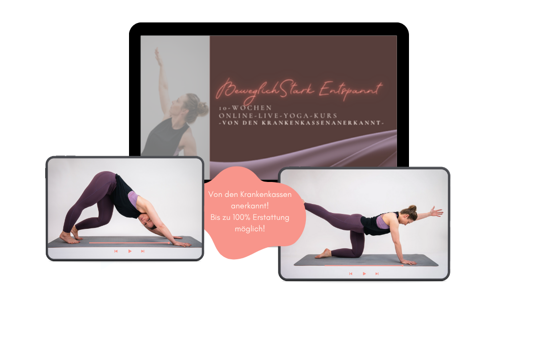 10 Wochen lang findet der Live Kurs statt, jeden Mittwoch um 17:30Uhr für 60 Minuten. Einfach online teilnehmen, egal wo du bist. Am Ende bekommst du die Teilnahmebestätigung von, die du unkompliziert bei deiner Krankenkasse einreichst. Für die Erstattung müssen 8 Kurse absolviert werden.