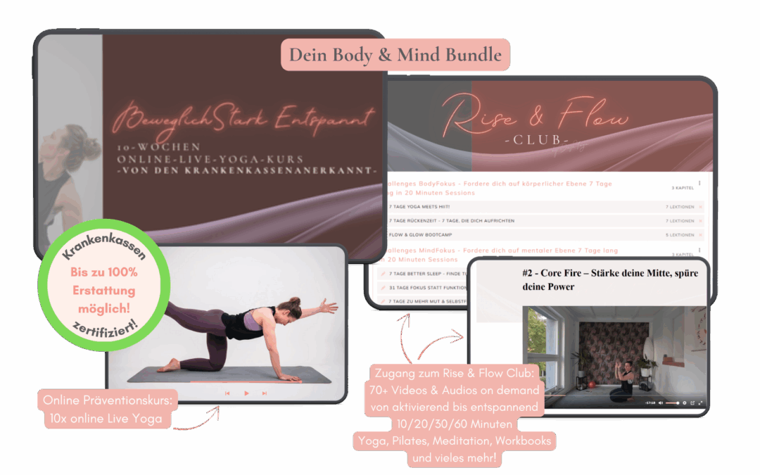 10 Wochen online live Yoga Präventionskurs von Dajana | Okt. 9, 2025 10 Wochen online live Yoga Präventionskurs Dein individuelles Manifestations-Toolkit – maßgeschneidert für DICH! ✨Kein 08/15-Manifestieren! Du erhältst persönlich abgestimmte Meditationen, Affirmationen & ein Workbook, die genau auf deine Ziele, Energie & Blockaden zugeschnitten sind.✔ 4 individuelle Meditationen (MP3)✔ 1 Audio mit personalisierten Affirmationen (MP3)✔ Manifestations-Workbook (PDF)🎁 Bonus: Digitales Affirmationskartenset für die ersten Bestellungen!So funktioniert’s:1️⃣ Bestellen & Fragebogen erhalten2️⃣ Fragebogen ausfüllen & absenden3️⃣ In 72h erhältst du dein persönliches Toolkit📥 Jetzt zum Einführungspreis sichern – nur für kurze Zeit! 🚀 Was Now 150 € Sale Anzahl Enter an amount € Add to Cart Add to Cart